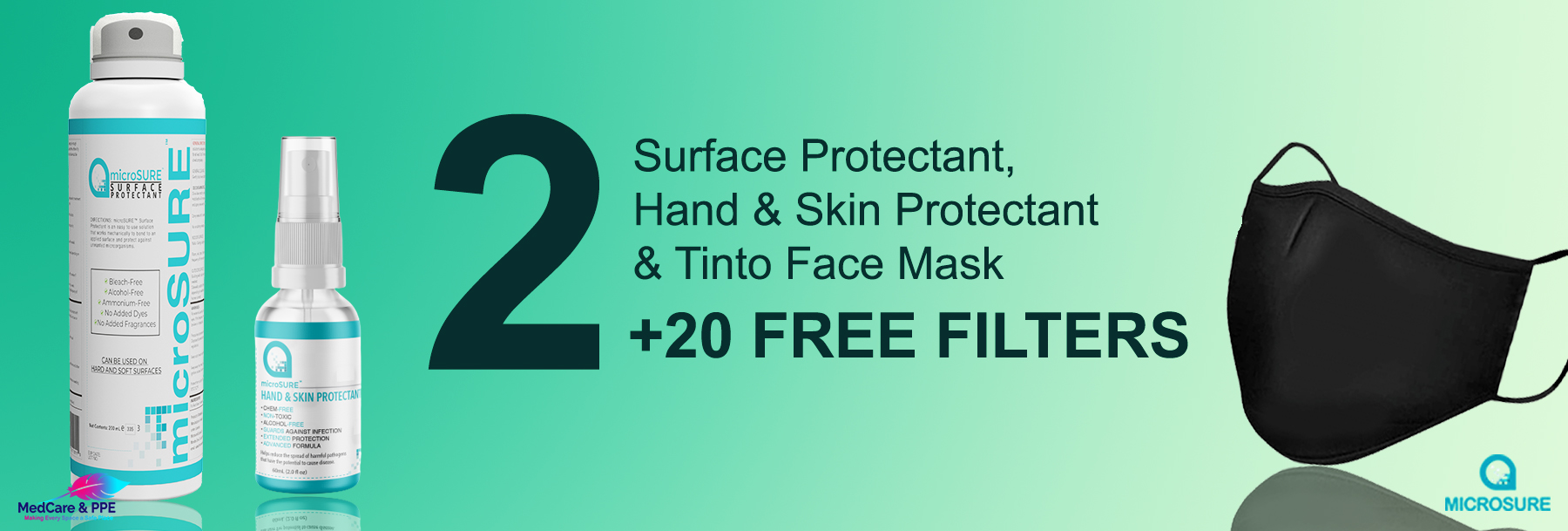 2 Surface Protectant, 2 Hand & Skin Protectant, 2 Tinto Face Mask and 20 Free Filters