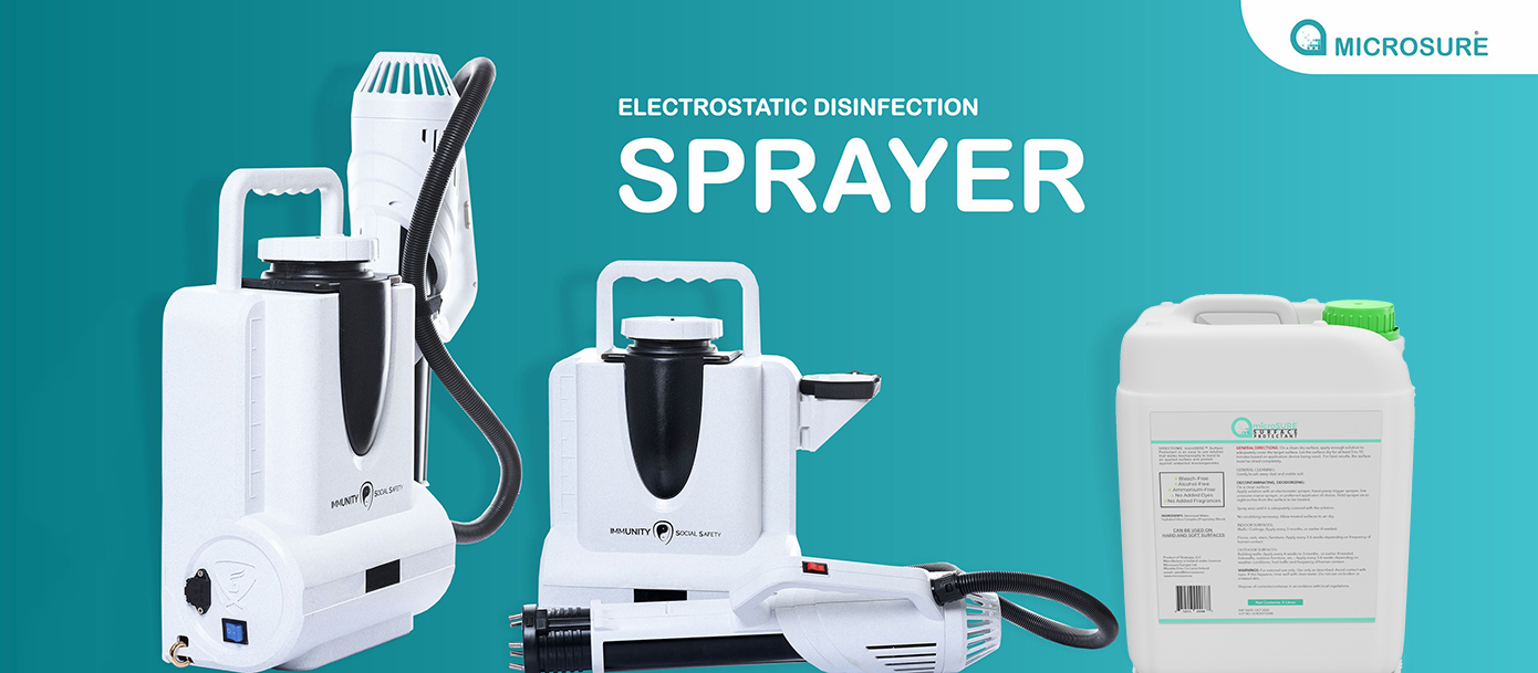 Immunity social safety Electrostatic sprayer from MedCare PPE is the ideal tool for disinfecting your commercial property, school, warehouse, medical facility / Home, or any space that requires ultimate coverage. It allows for thorough disinfection of surfaces and objects when using microSURE surface protectant, which is proven technology to be effective in destroying bacteria, the virus responsible for pathogens, and also a wide range of other destructive microorganisms.
