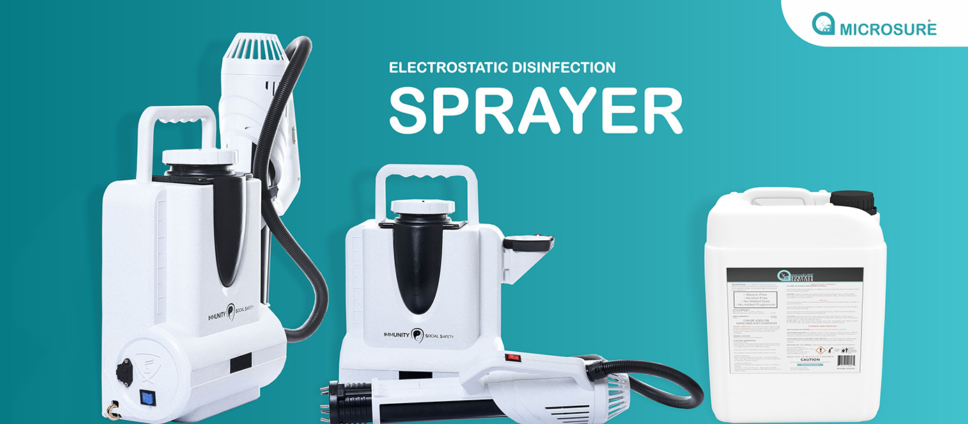 Immunity social safety Electrostatic sprayer from MedCare PPE is the ideal tool for disinfecting your commercial property, school, warehouse, medical facility / Home, or any space that requires ultimate coverage. It allows for thorough disinfection of surfaces and objects when using microSURE surface protectant, which is proven technology to be effective in destroying bacteria, the virus responsible for pathogens, and also a wide range of other destructive microorganisms.
